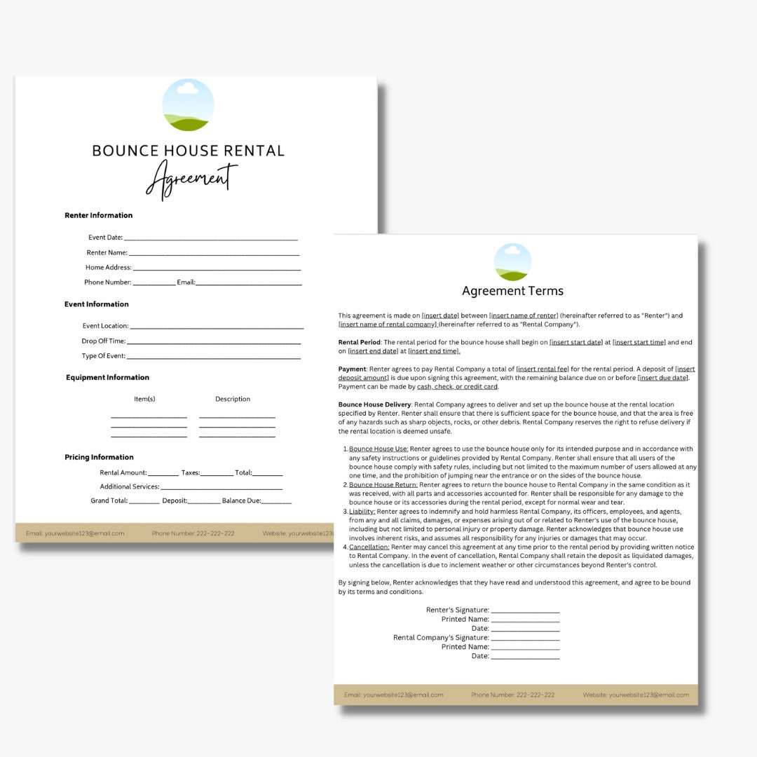Bounce House Rental Agreement Template digital Download Etsy