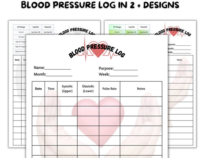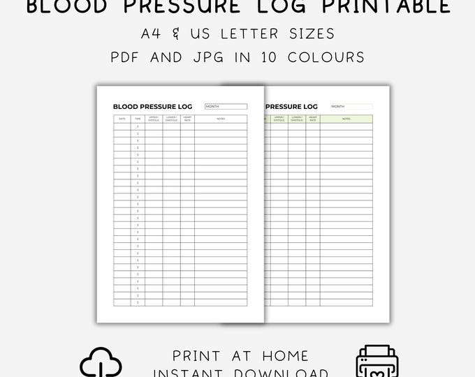 Blood Pressure Log: Printable Blood Pressure Log Sheet Etsy