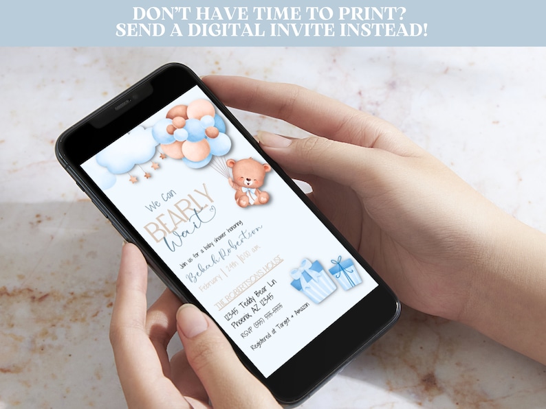Teddy Bear Baby Shower Invitation: Boy Bear Theme (digital Download) Etsy