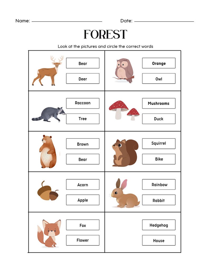 Woodland Animal Printables for Kids Counting Matching Coloring