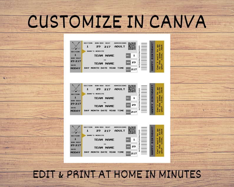 Printable Hockey Ticket EDITABLE Hockey Game Ticket Template / LA
