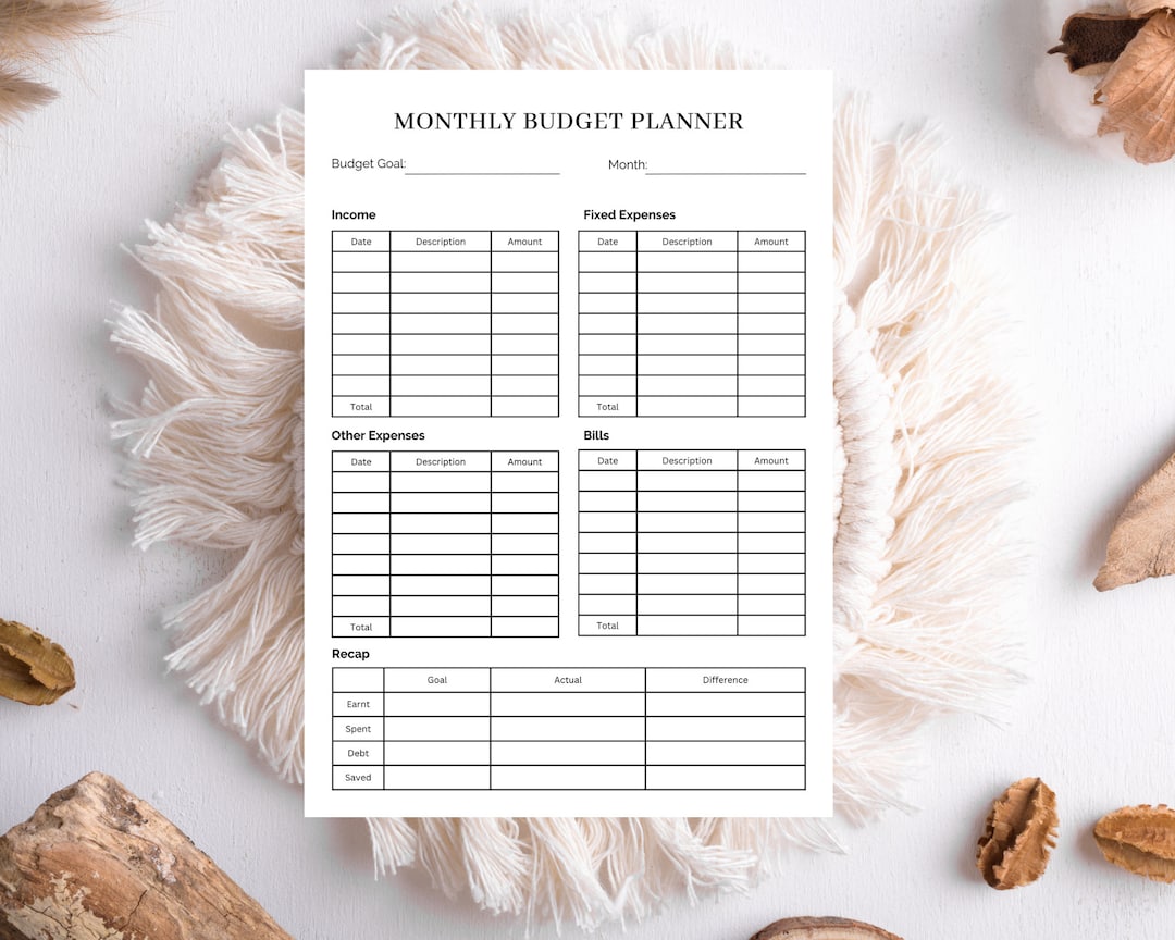 Easy Monthly Budget Printable Digital Download Modern Minimalist