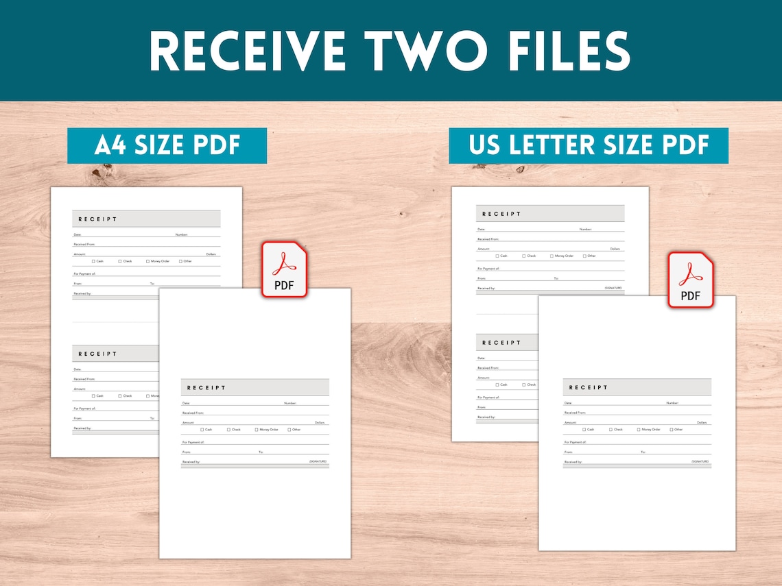 Simple Receipt Template Printable Template in PDF Word Pack of 5