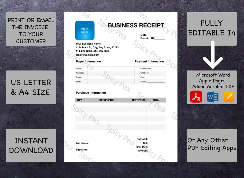 Receipt template receipts business receipt invoice etsy australia Artofit
