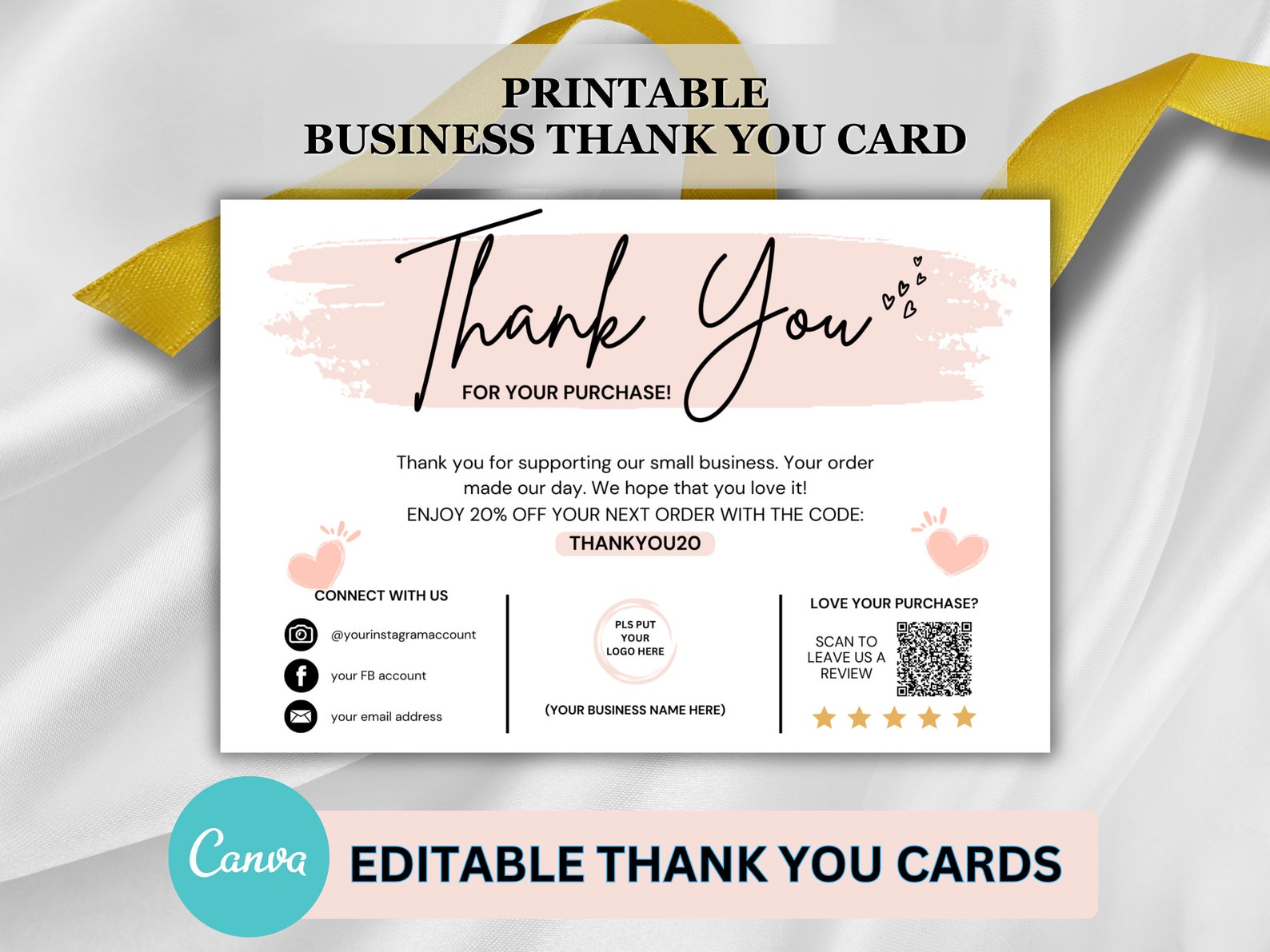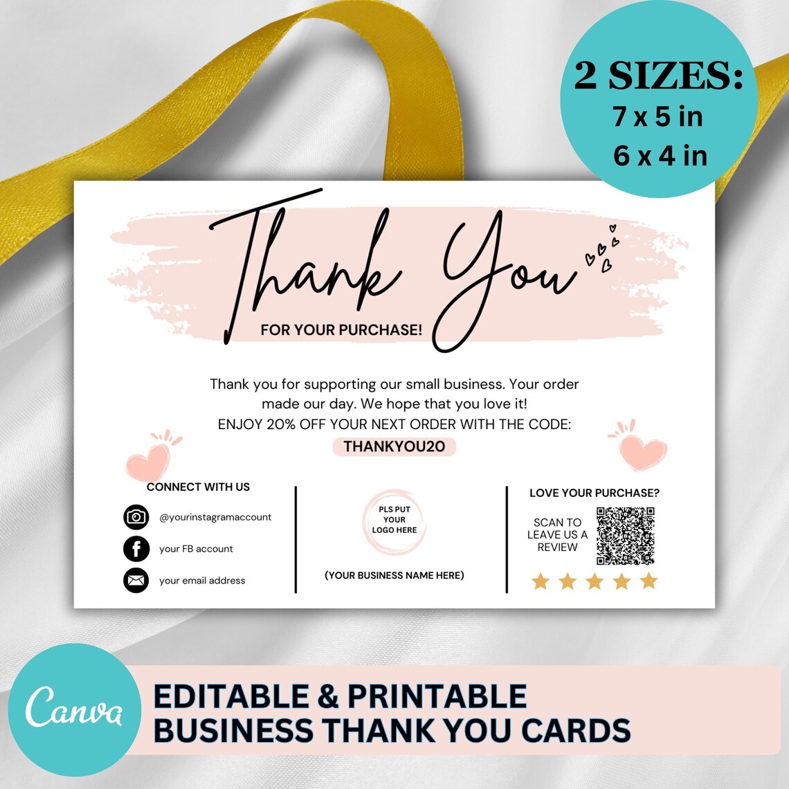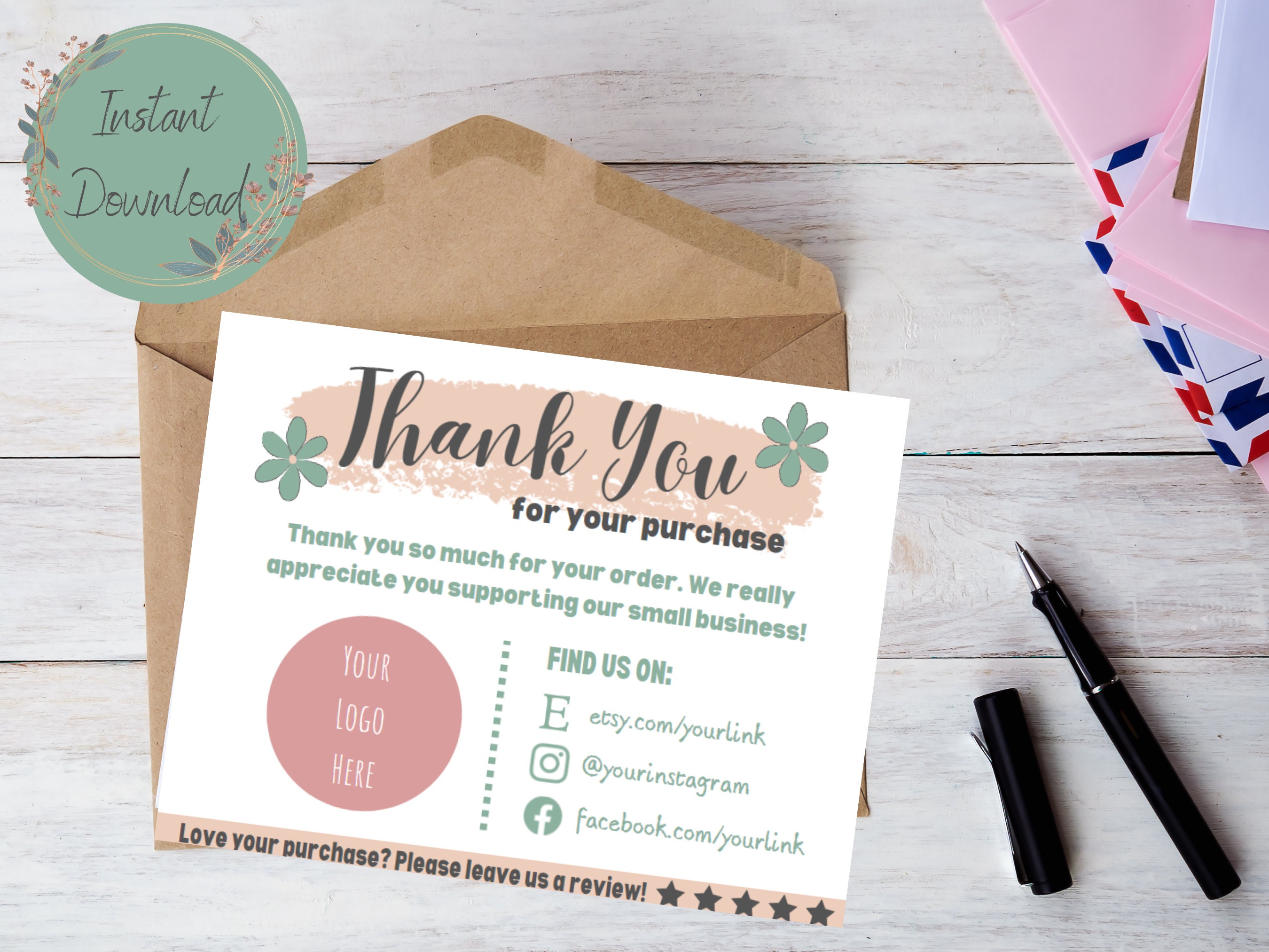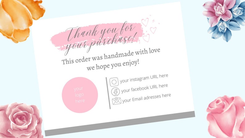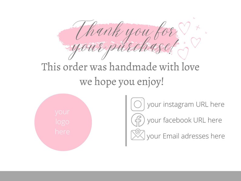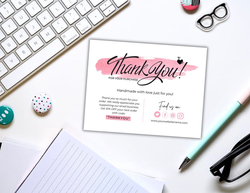 Editable Printable Business Thank You Cards perfect for Etsy shops