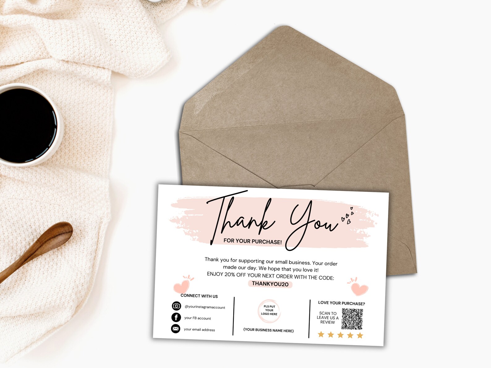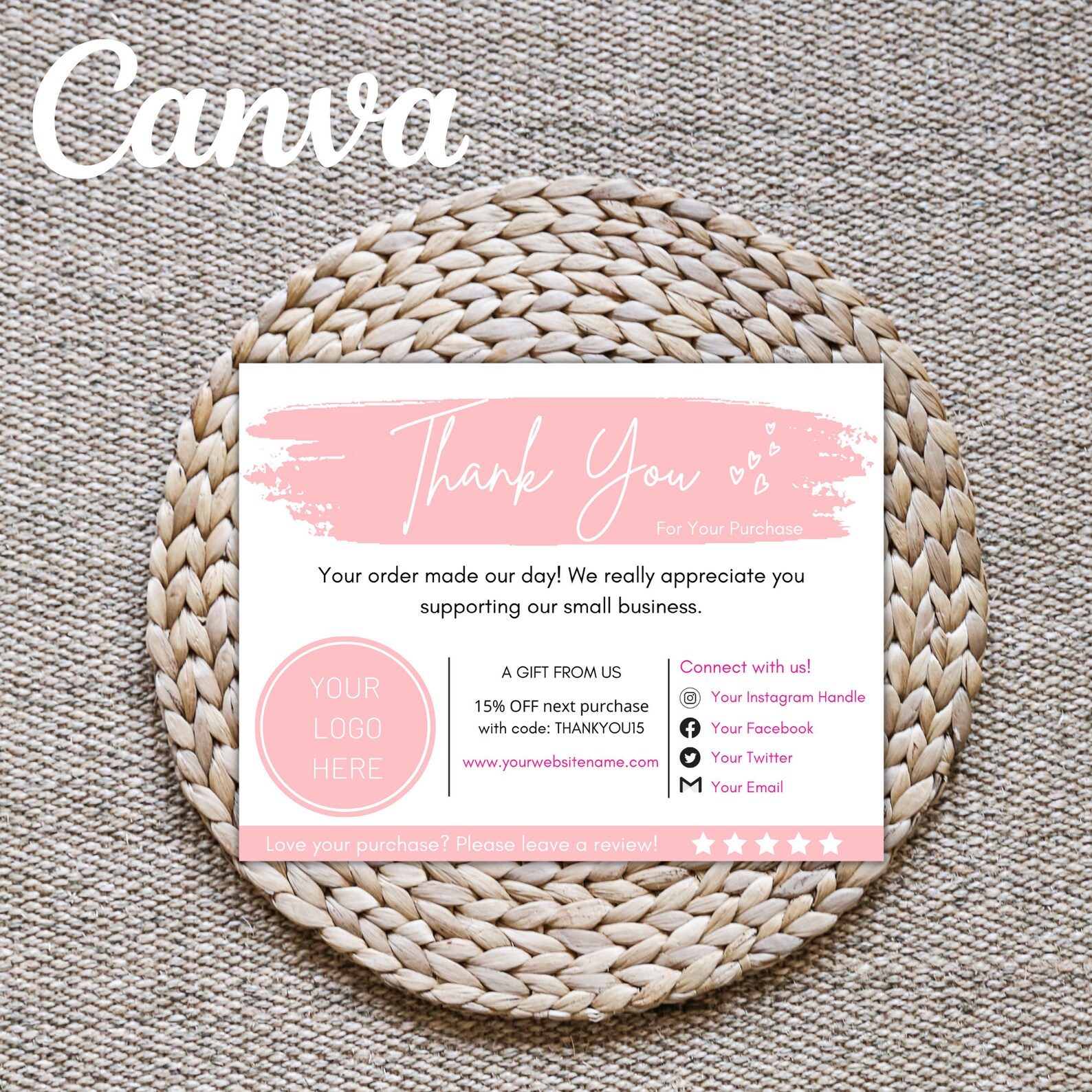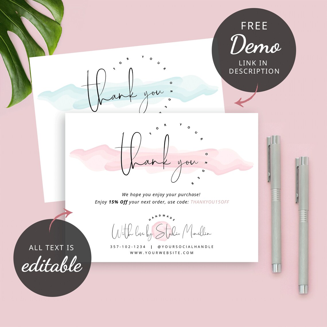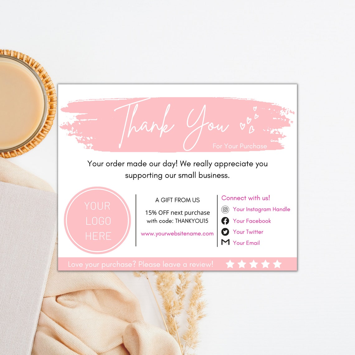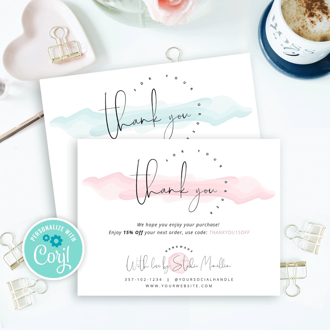 Editable Printable Business Thank You Cards perfect for Etsy shops