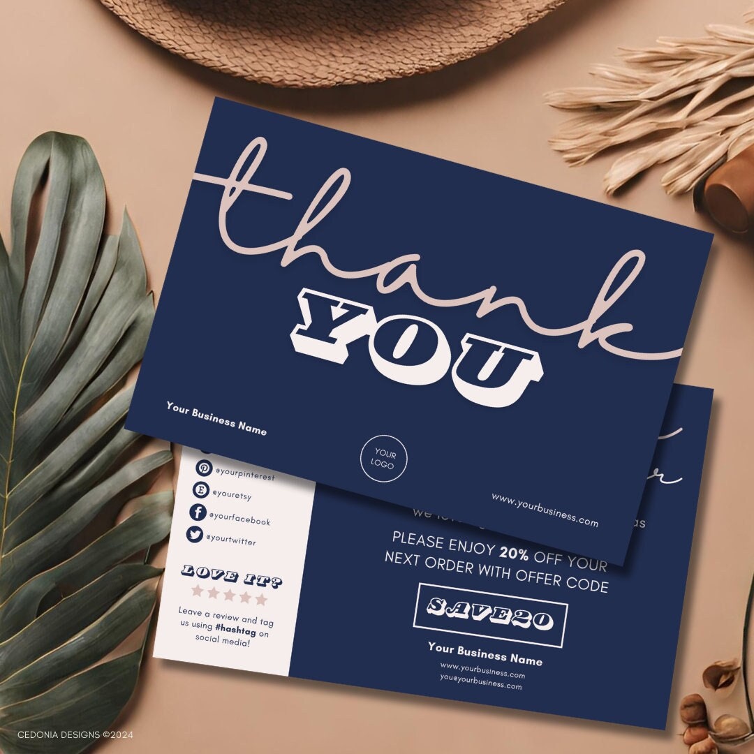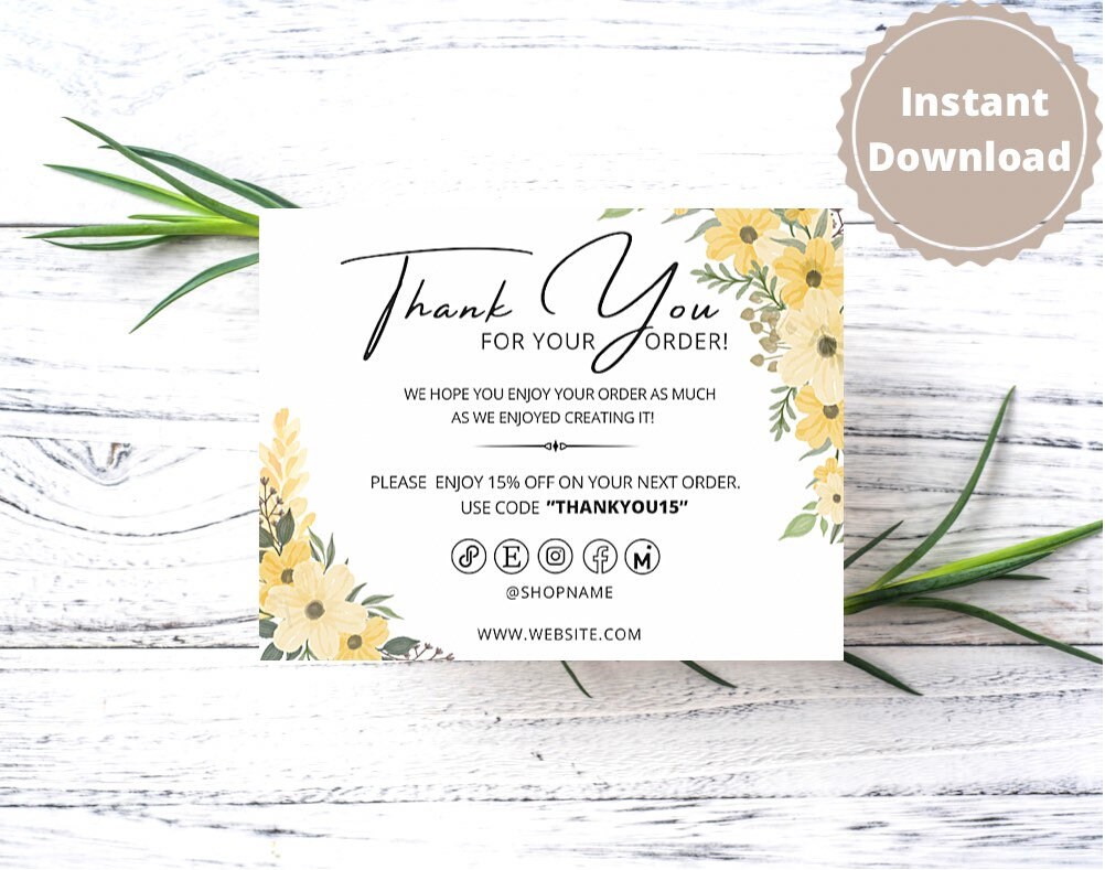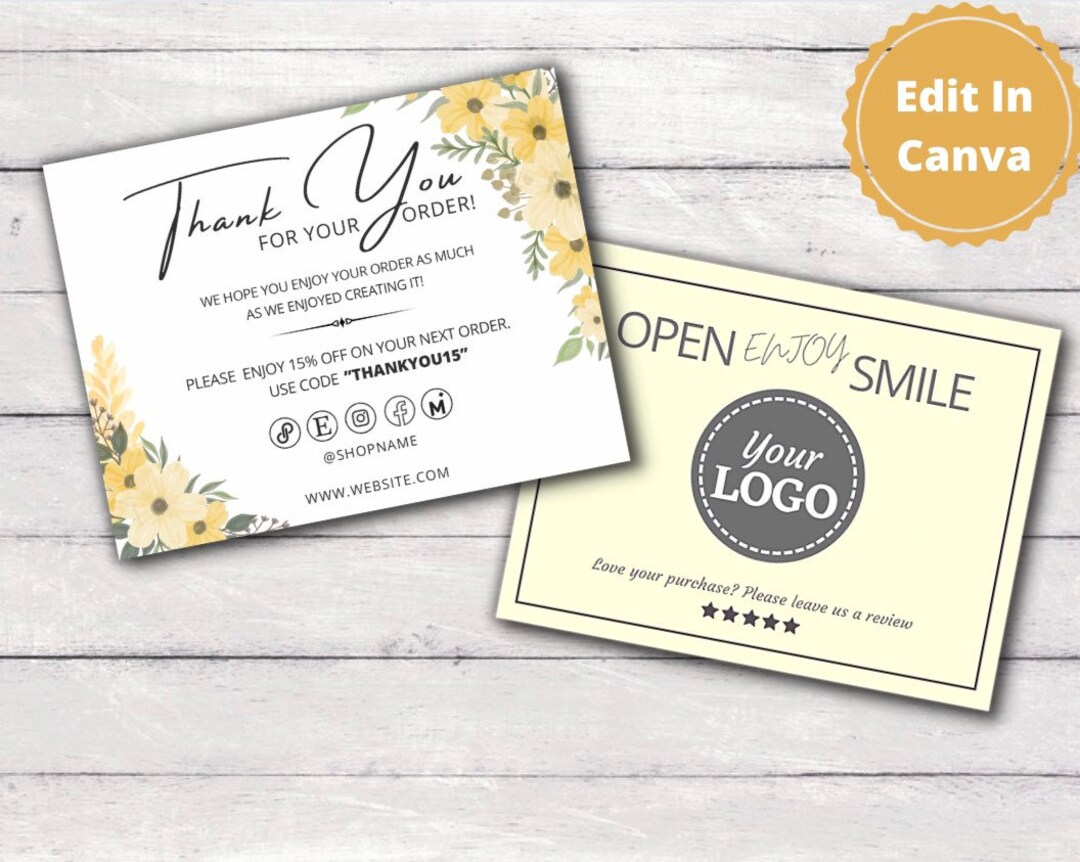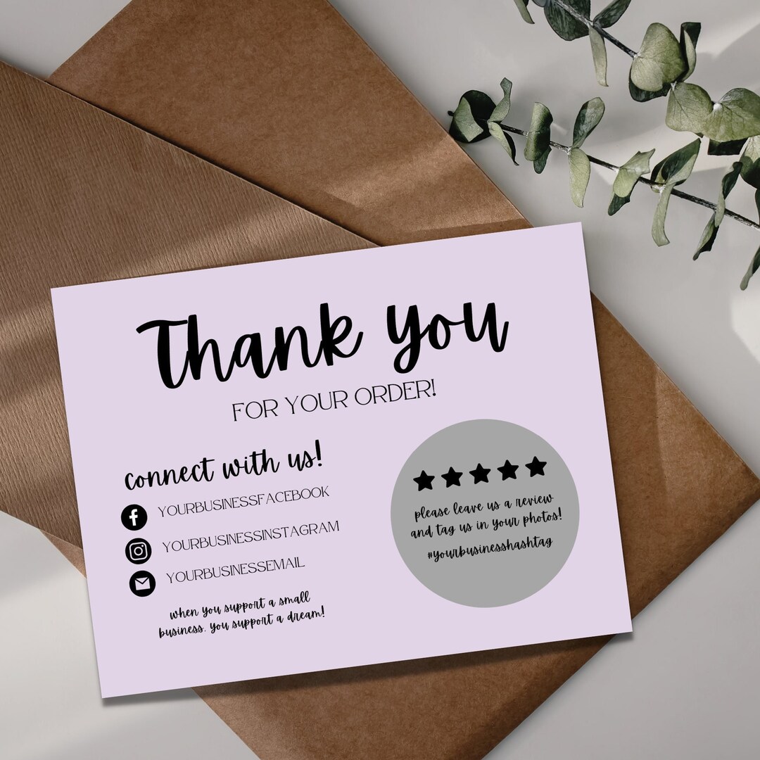 Printable Business Thank You Cards Editable Packaging Insert for Small