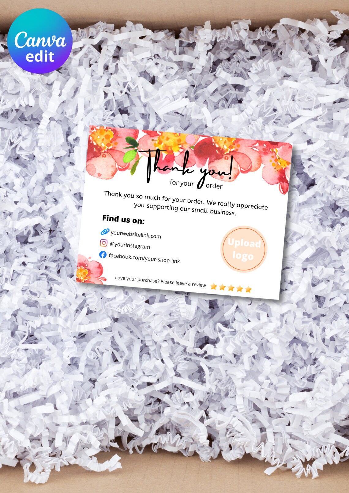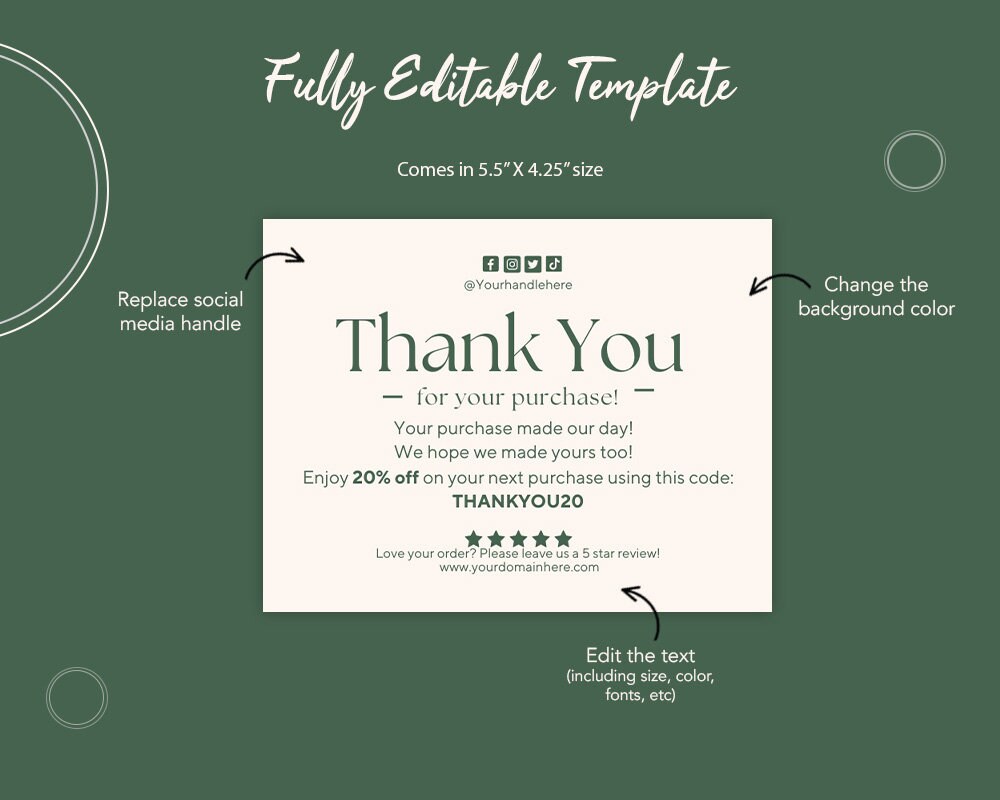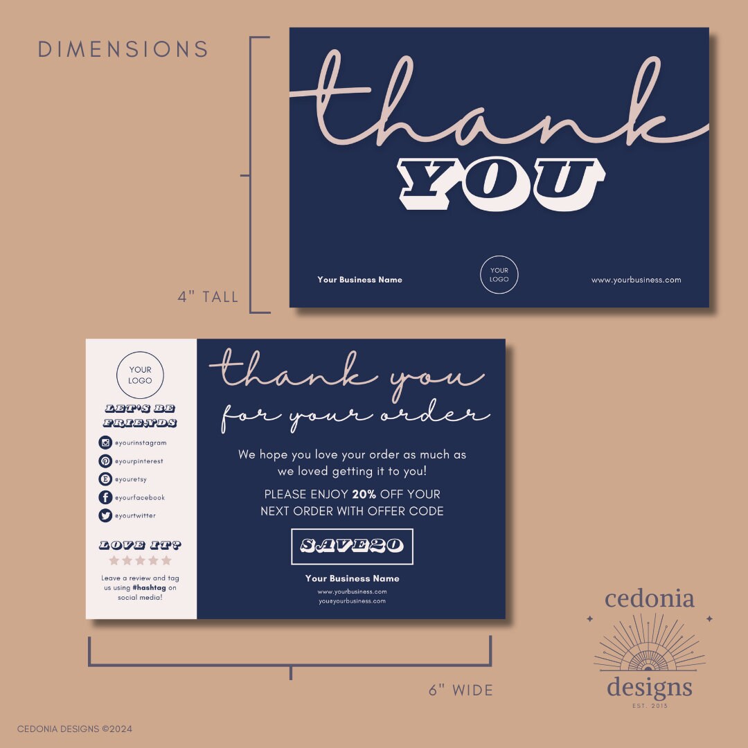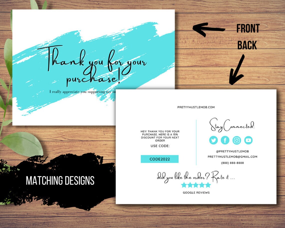 Printable Business Thank You Cards Editable Packaging Insert for Small