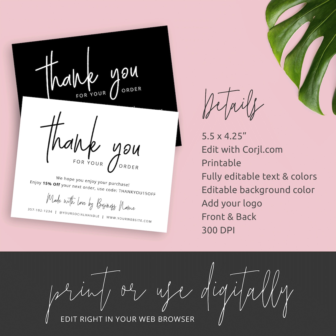 Printable Business Thank You Card Template Corjl Thank you Etsy