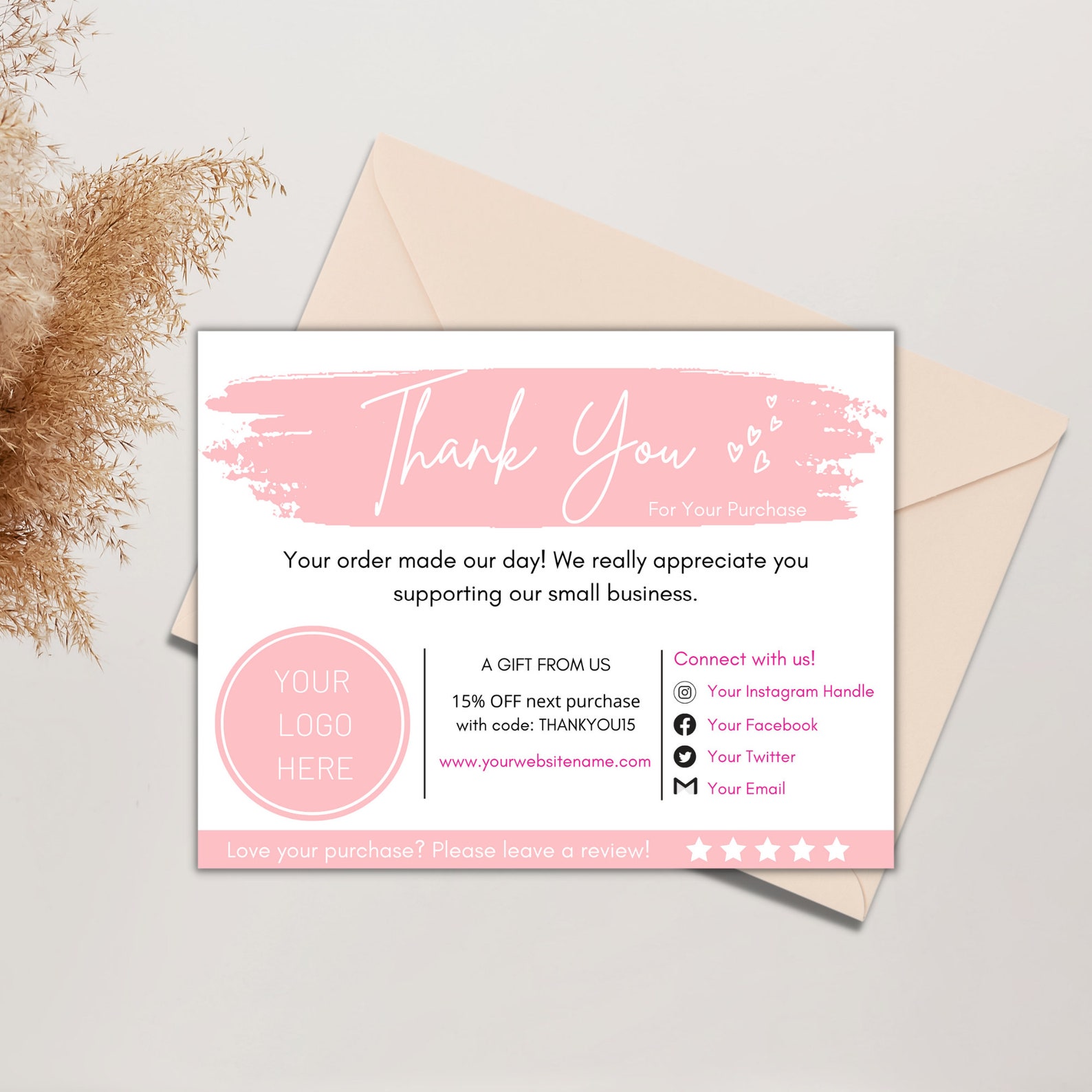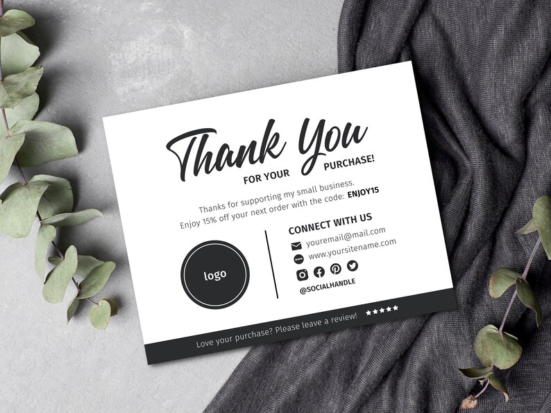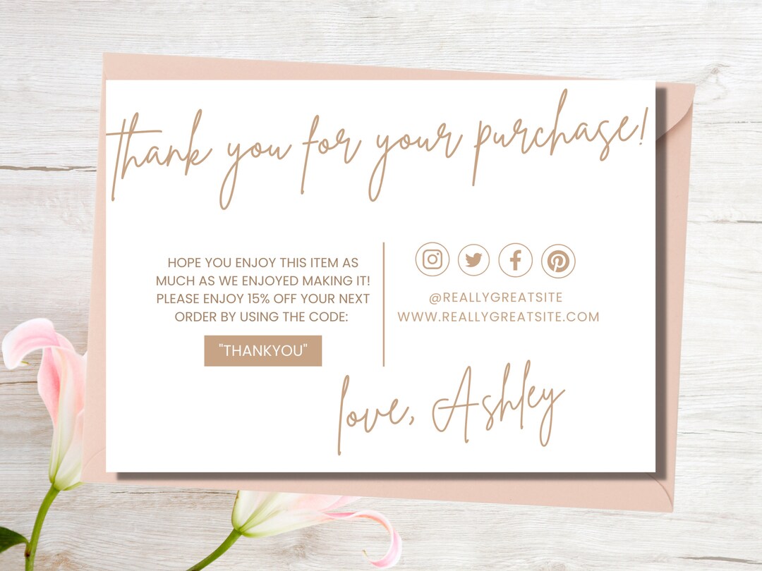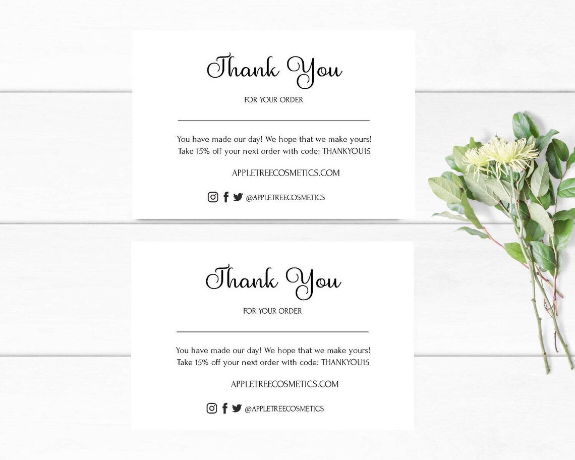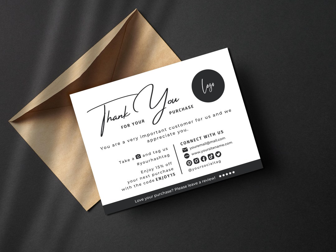 Printable Business Thank You Card Template Customizable Package Insert