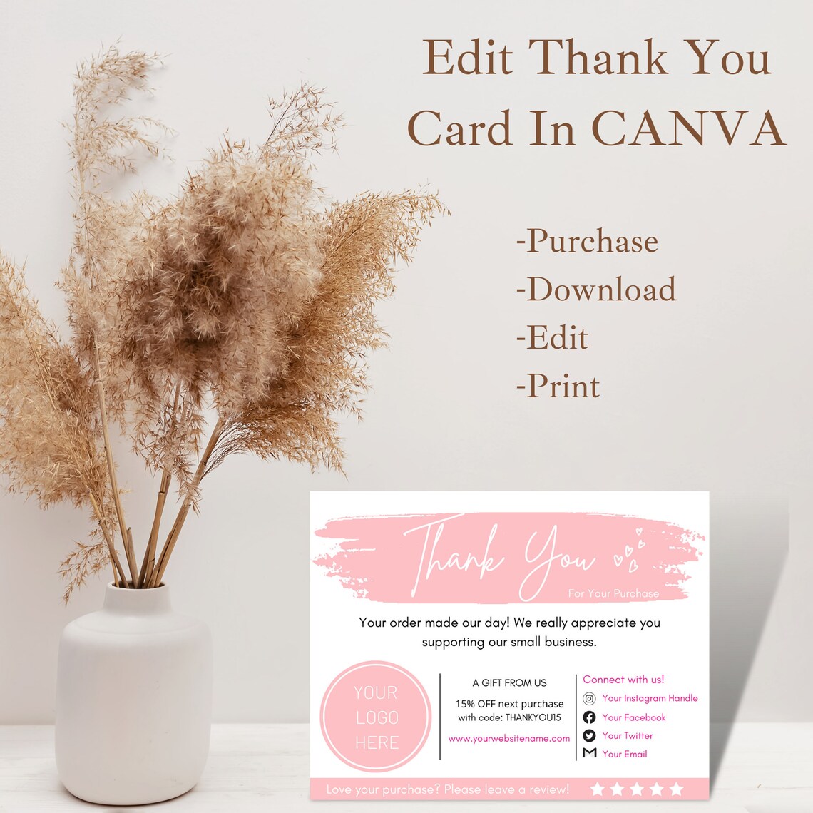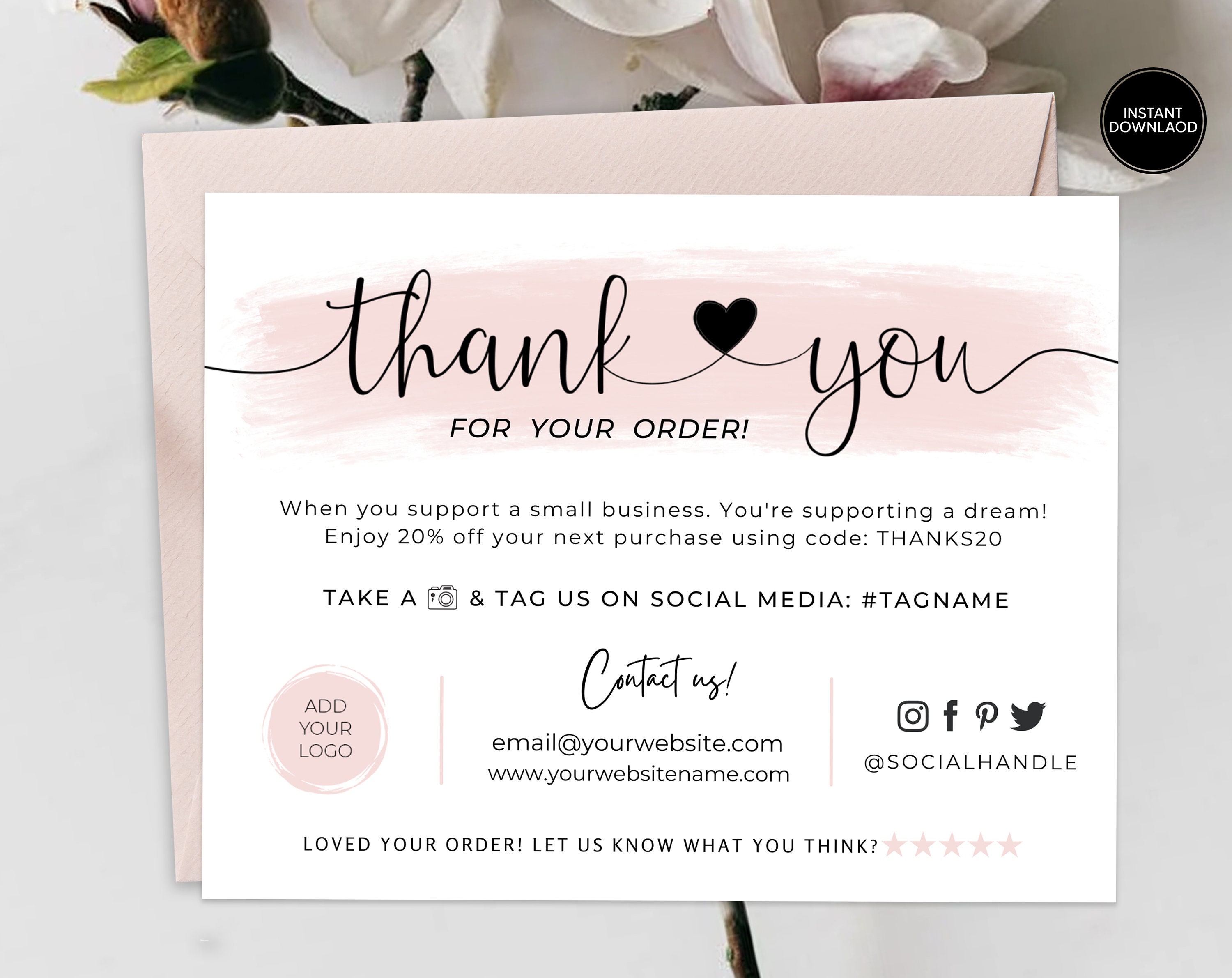 DIY Printable Thank You Card for Your Order Small Business Card Add