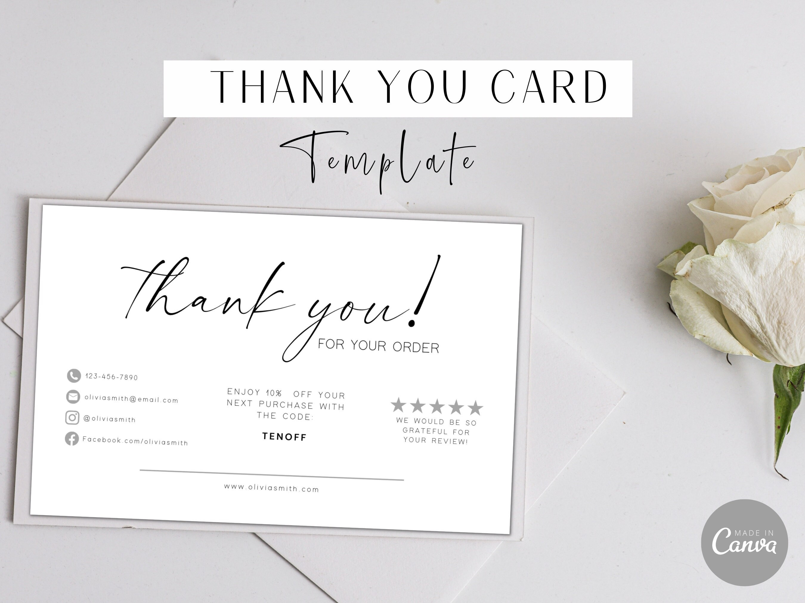 Editable Business Thank You Card Printable Postcard Canva Etsy UK