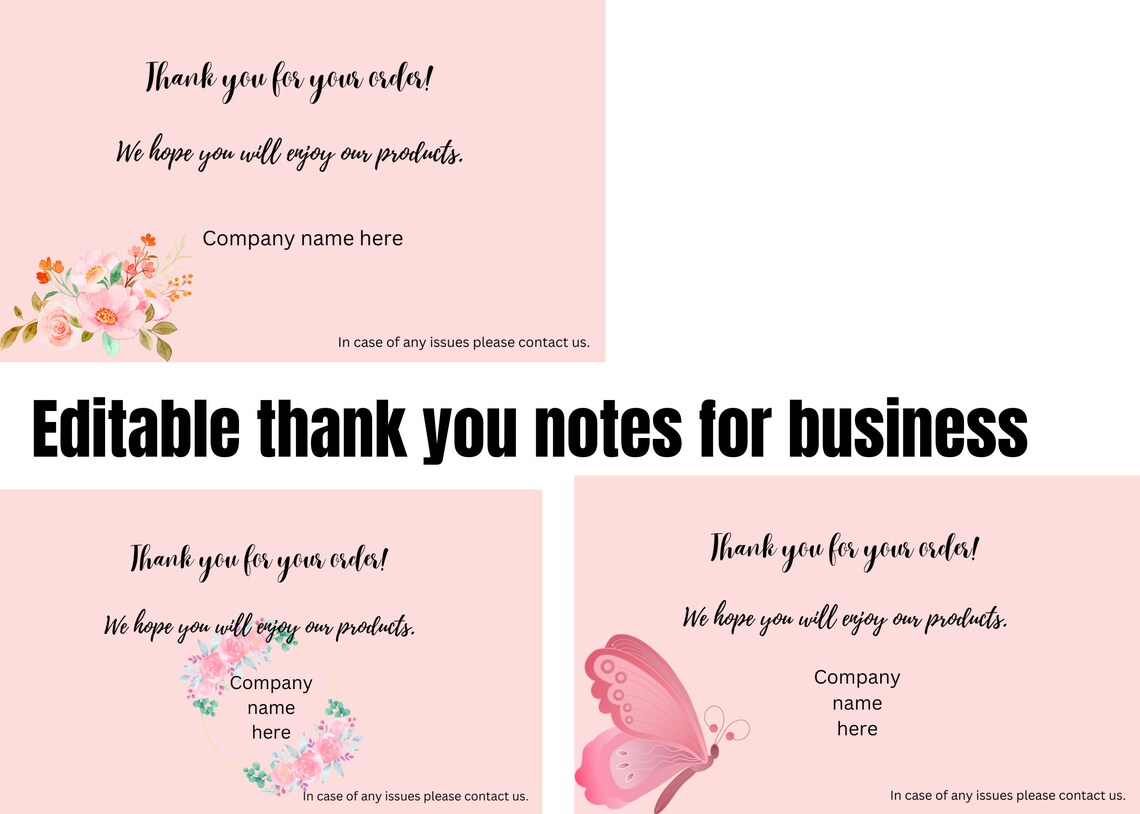 Printable Thank You Cards Business Template Pink Business Etsy
