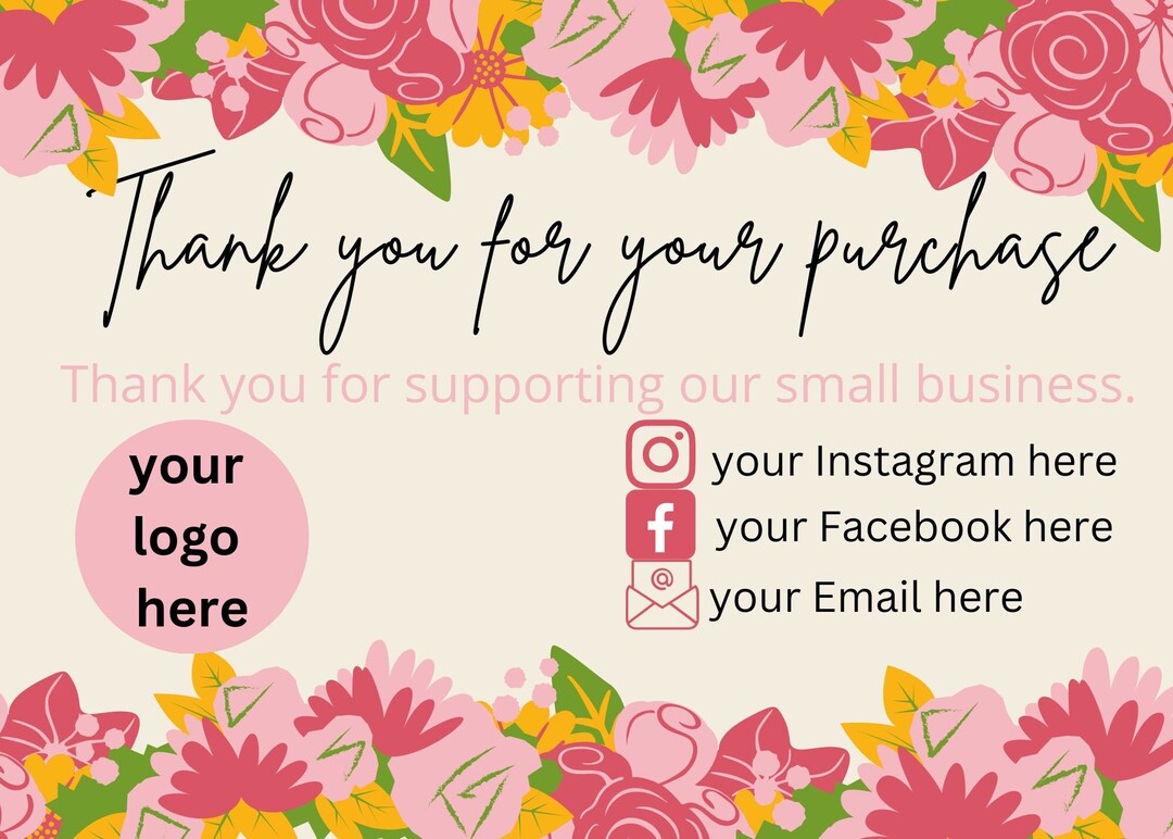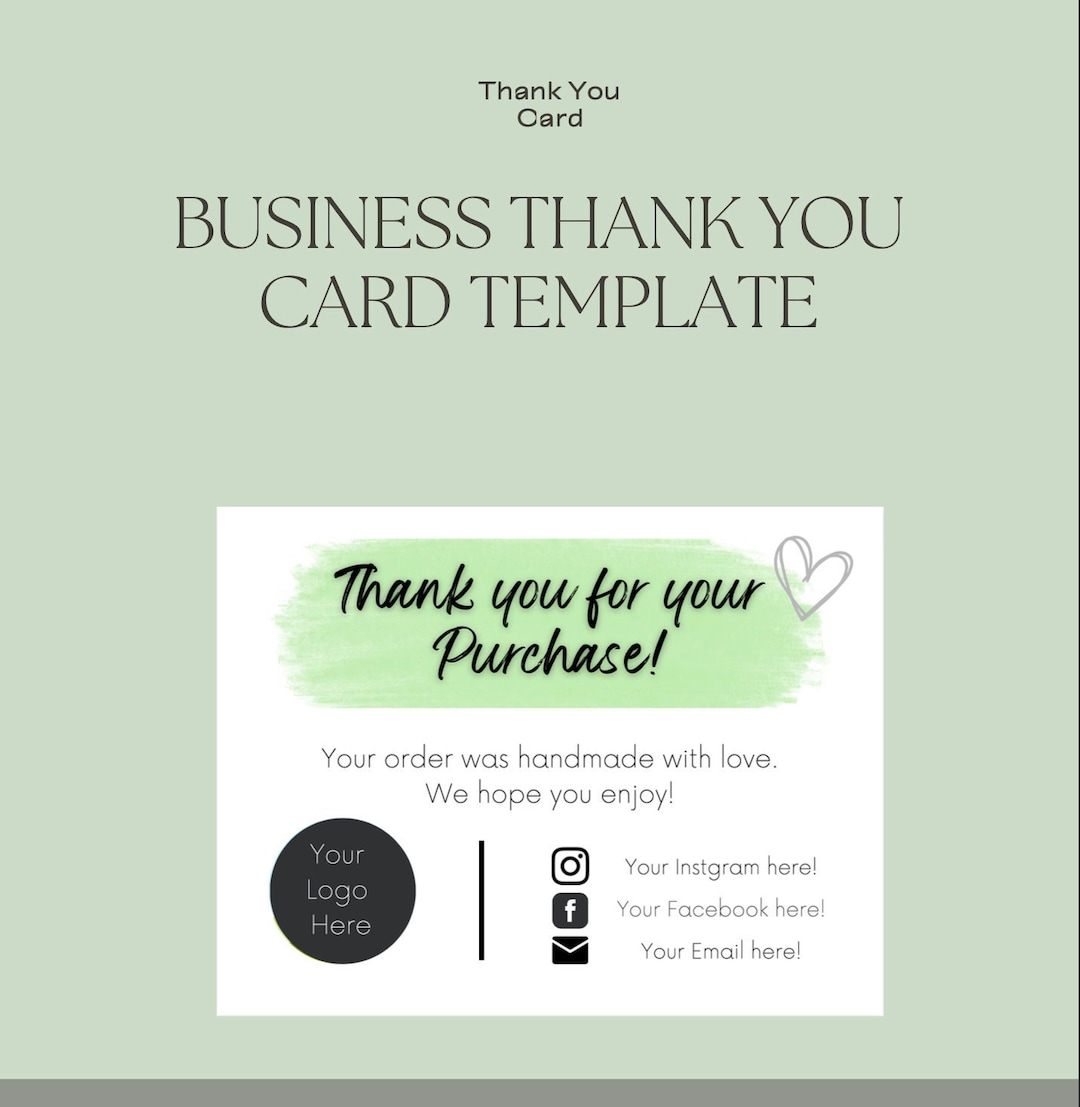 Small Business Thank You Card Template Printable Thank You Etsy