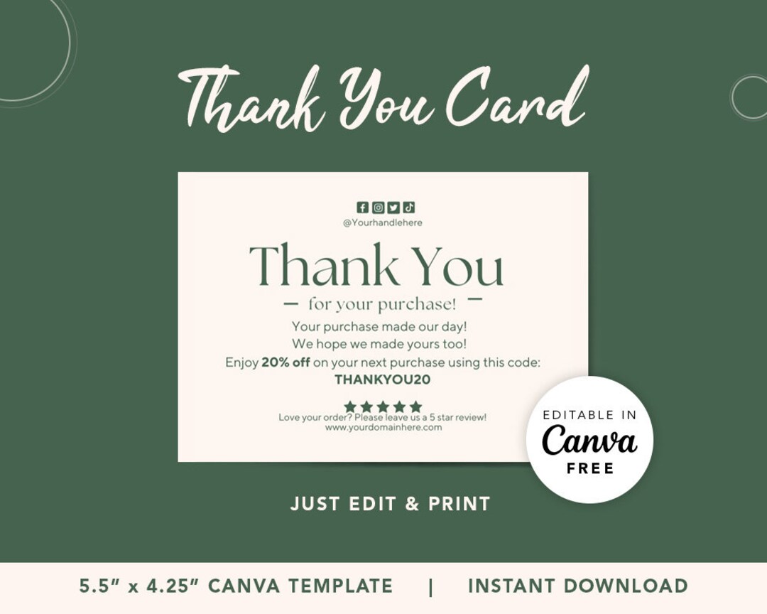 Small Business Thank You Card Template Print at Home Thank Etsy