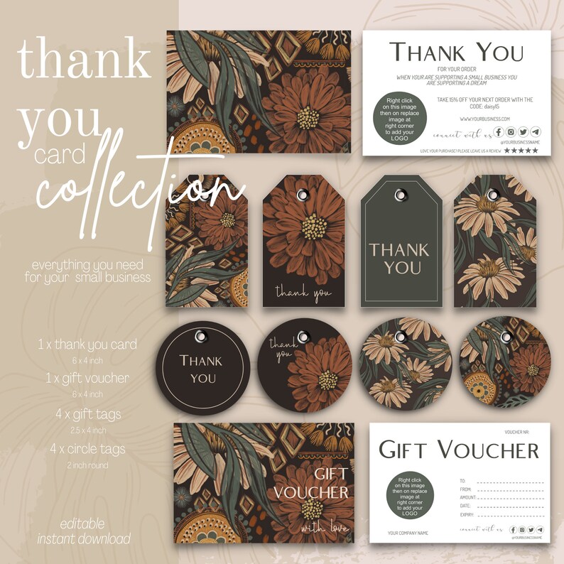 Printable Thank You Cards Business Cards Template Editable Etsy