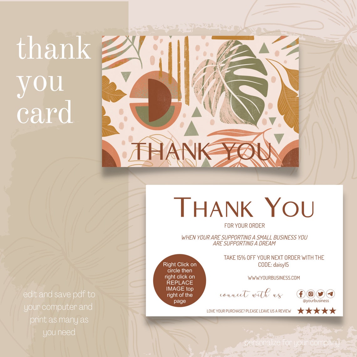 Printable business thank you card template thank you for your etsy