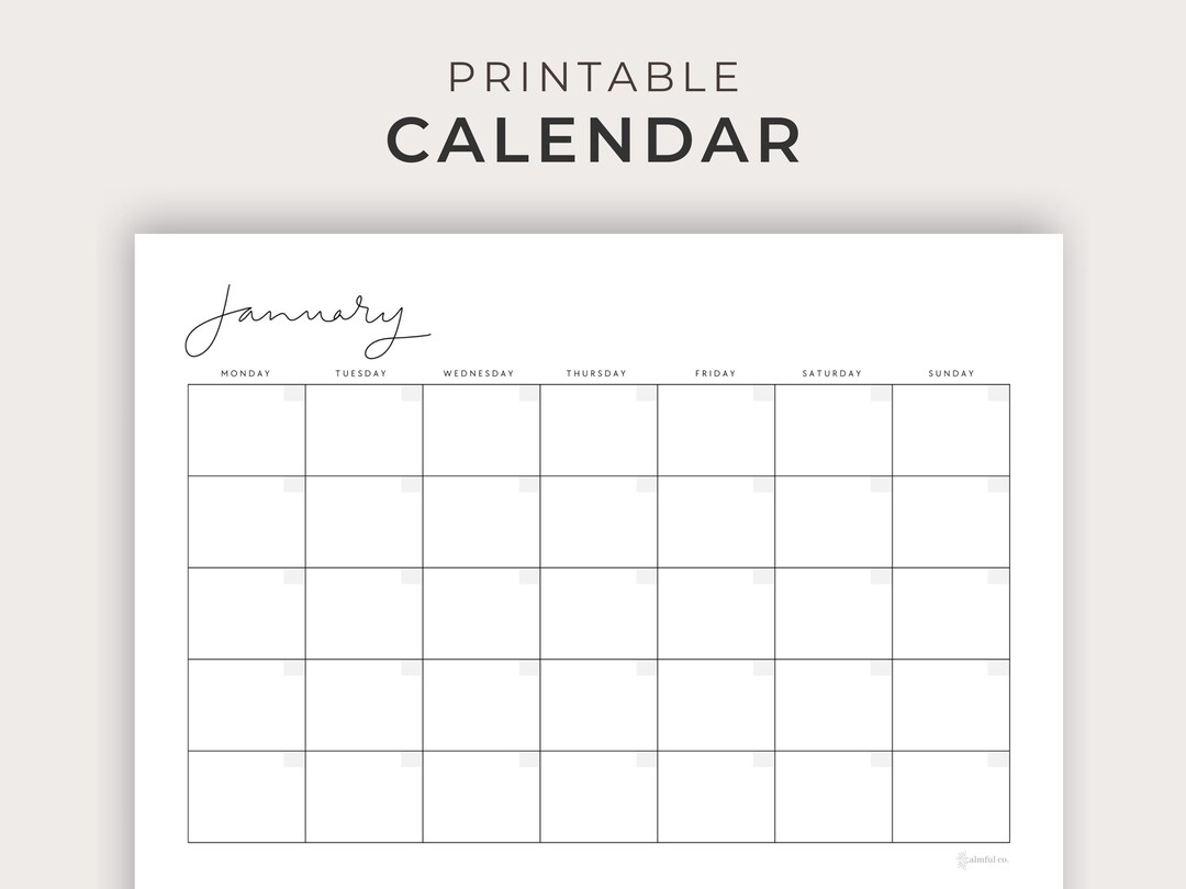Blank Monthly Calendar Printable Landscape Calendar Minimalist