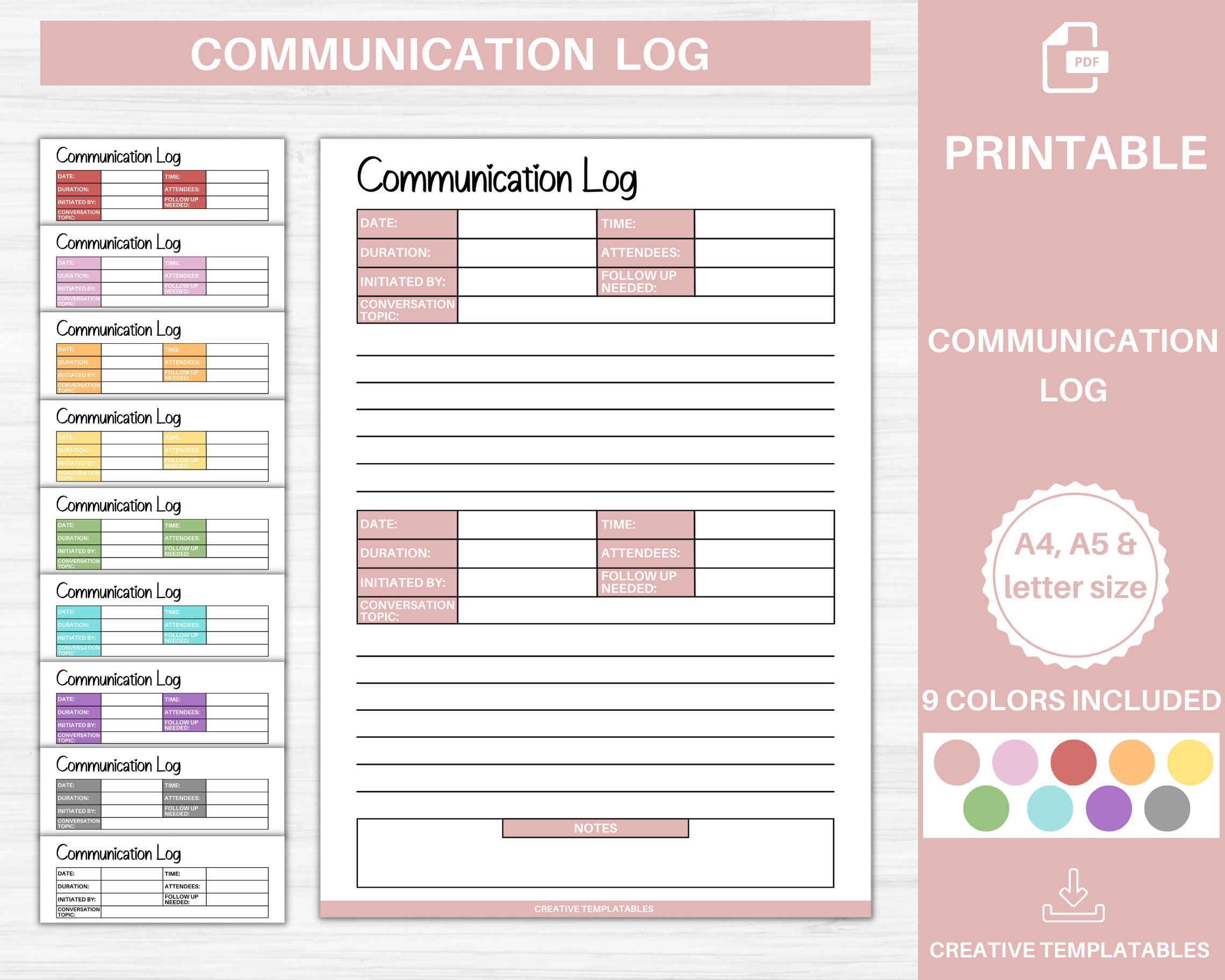 Communication Log Printable Communication Record Call Log Etsy Canada