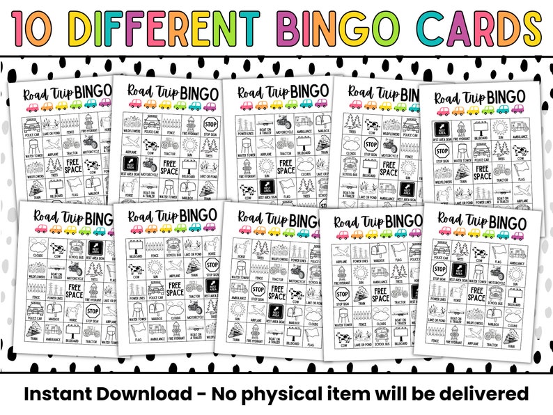 Car Bingo Cards Printable for Road Trip Kids Car Ride Games Travel