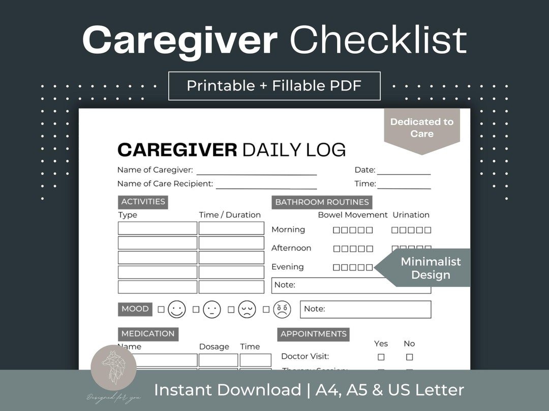 Caregiver checklist printable caregiver log elderly care etsy Artofit