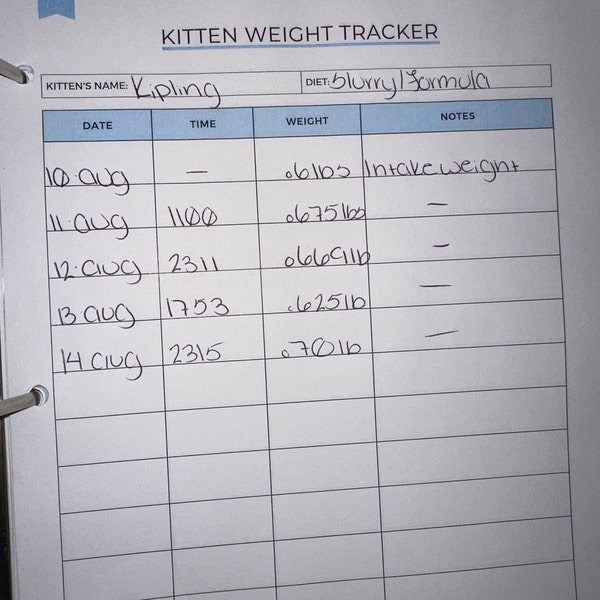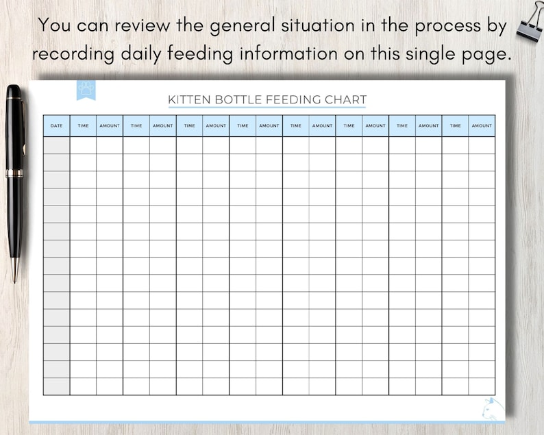 Kitten Bottle Feeding Tracker: Newborn Cat Care Chart (printable PDF