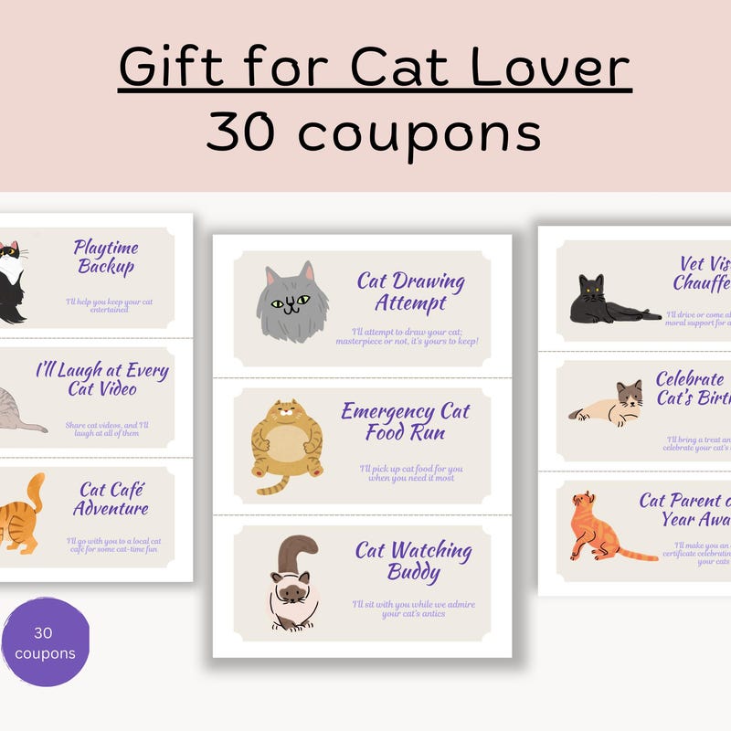 Cat Lover Gift Printable Cat Coupons Cat Owner Gift Fun Cat themed