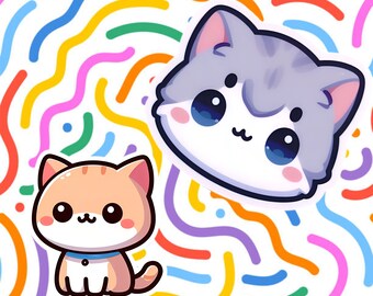 Printable Cat Stickers / Cute Cat Stickers / Cute Animal Stickers