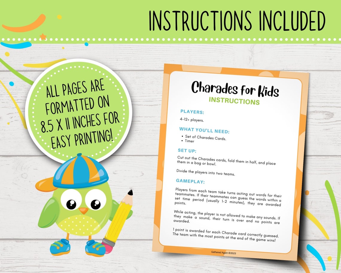 Charades Game Cards for Kids Printable Charades Party Game Act It Out