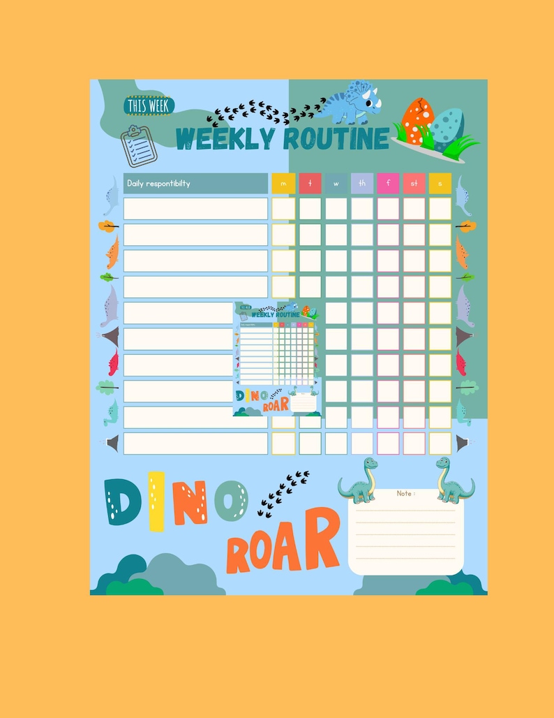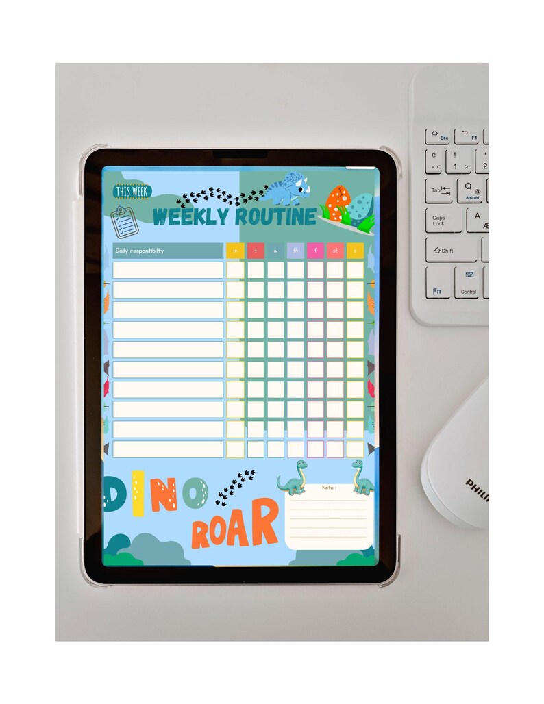 Printable Dino Chore Chart for Kids Editable Daily Routine Tracker