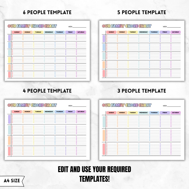 Family Chore Chart Editable Weekly Planner Kids Adults Cleaning
