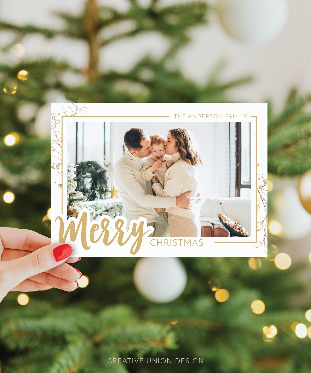 Christmas Photo Card Template Printable Holiday Card Modern Merry