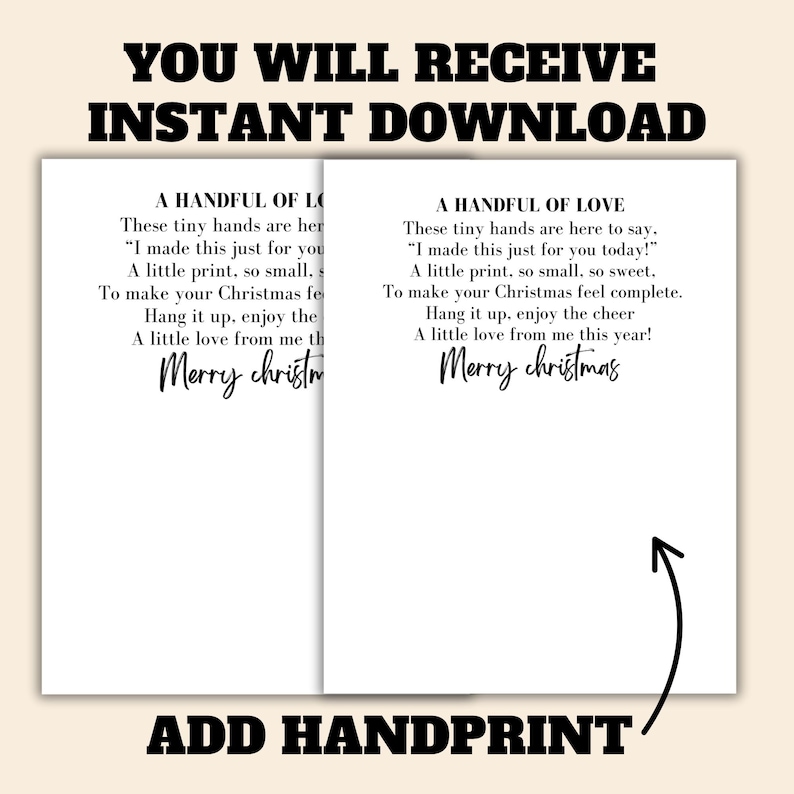 Merry Christmas Handprint Art Christmas Gift Handprint Poem Etsy