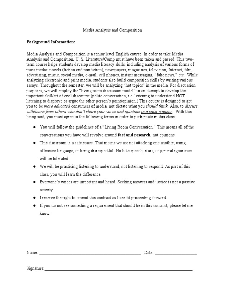 Printable Classroom Contract Template Printable Calendars AT A GLANCE