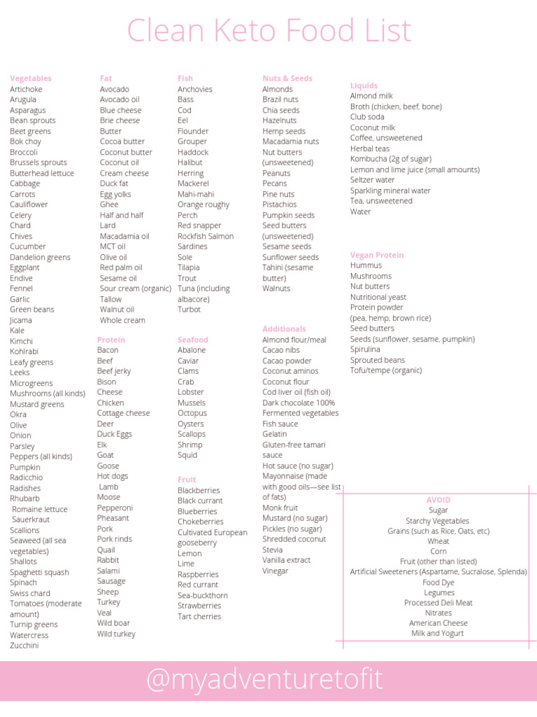 Printable Clean Keto Food List