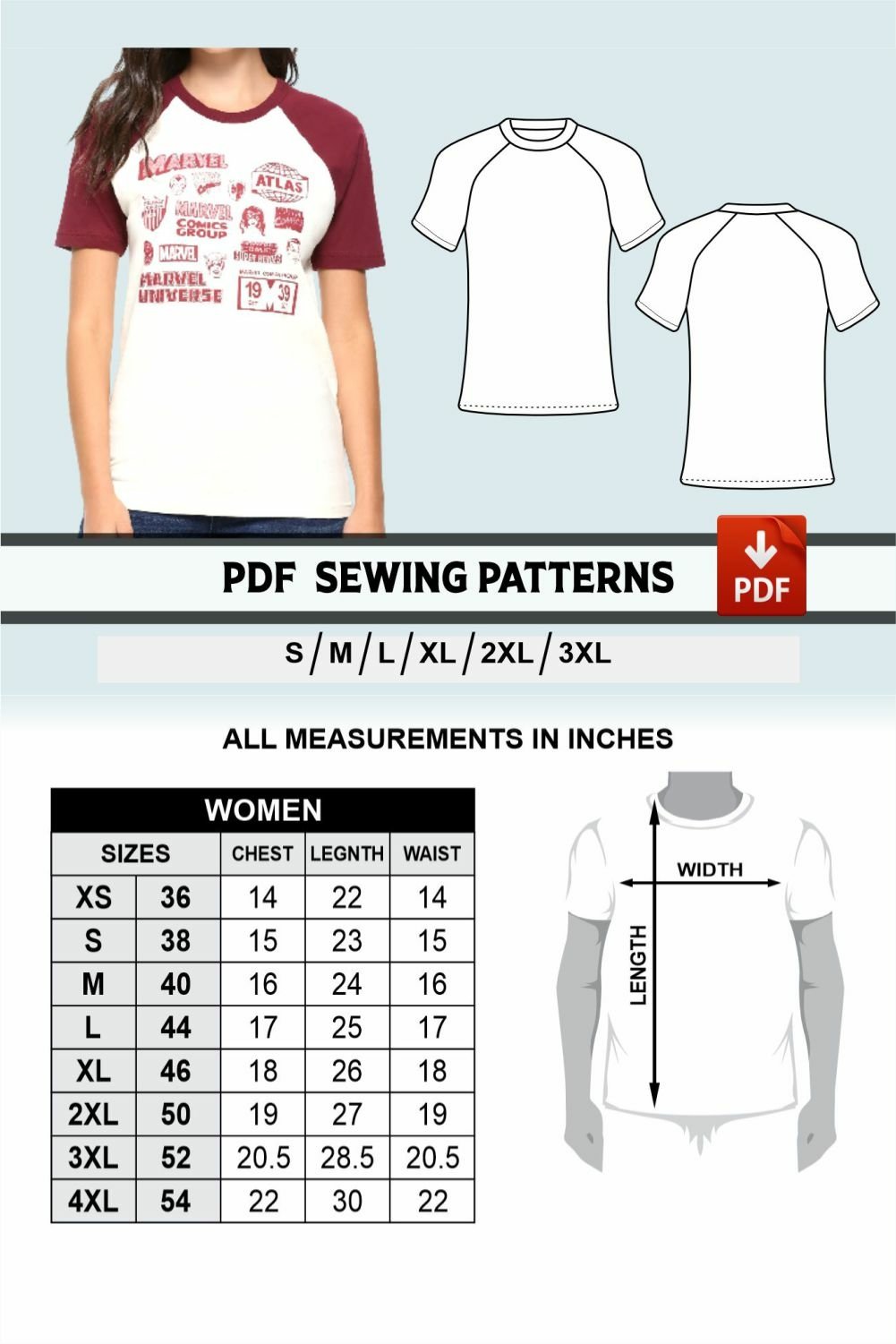 PDFpatterns Printable sewing pattern for Tshirt Sewing projects