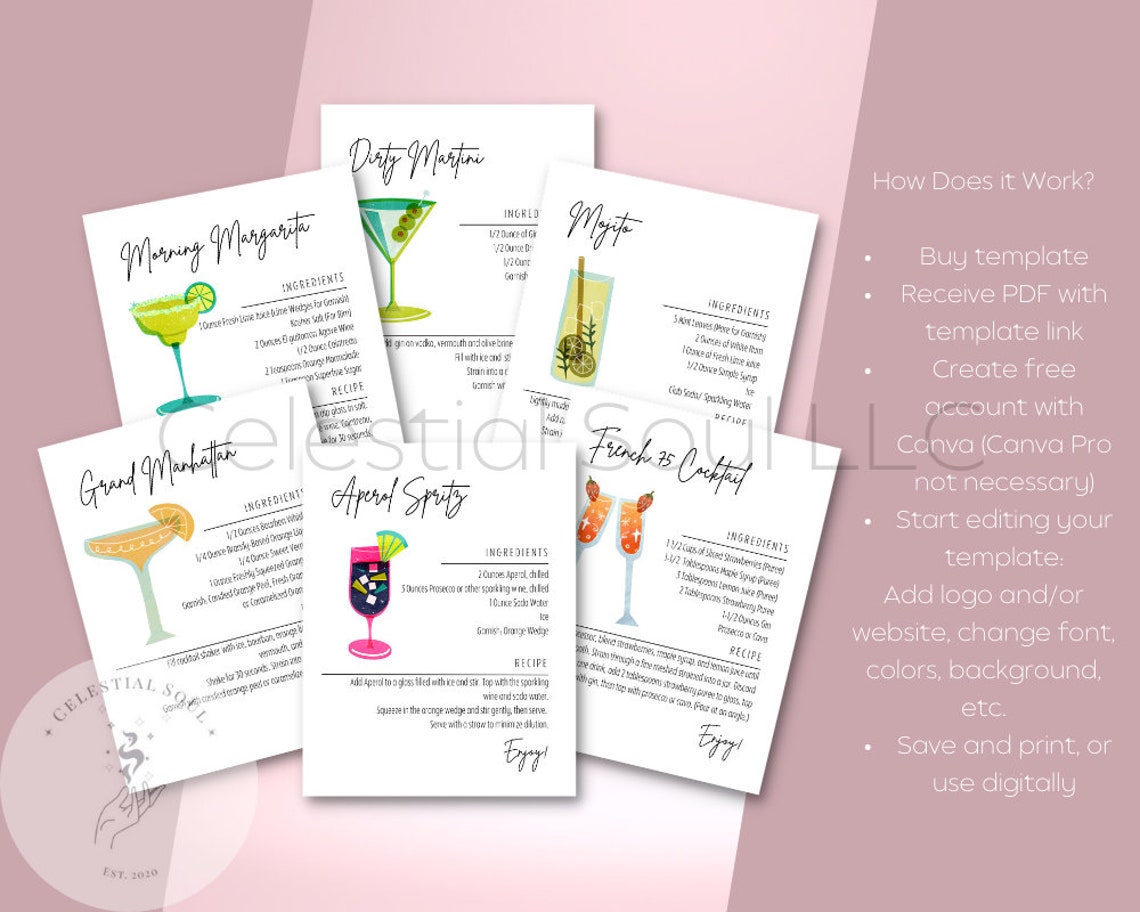 DIY Cocktail Recipe Card Canva Template Printable Drink Cards