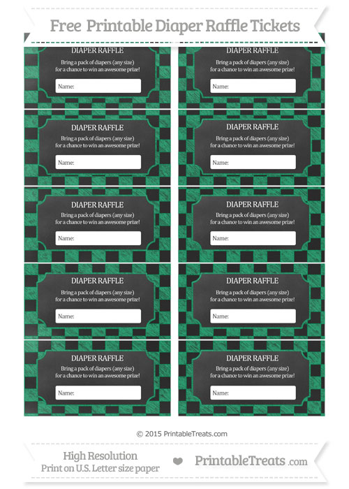 Free Shamrock Green Checker Pattern Chalk Style Diaper Raffle Tickets