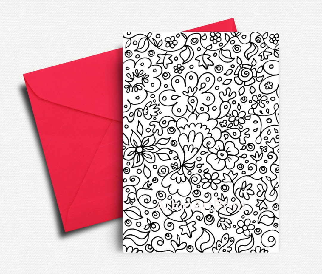 10 Printable Colouring Cards 5 With Greetings and 5 Without Etsy