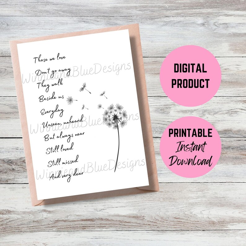 Printable Sympathy Card Those We Love Condolences Card Dandelion