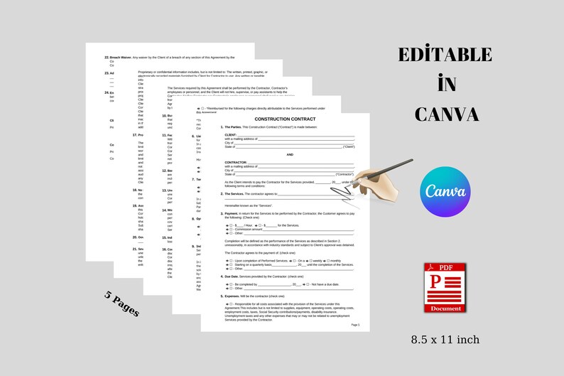 Printable Construction Contract Editable Construction Template