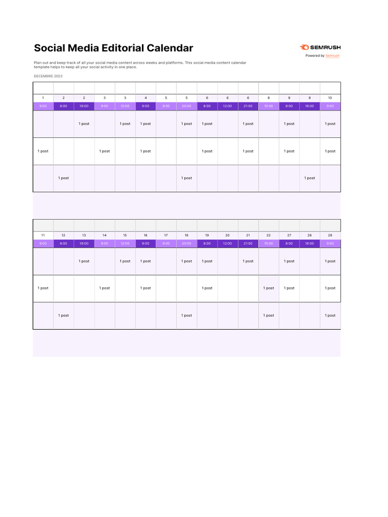 Copie de Content Calendar Templates by Semrush Copie de Content