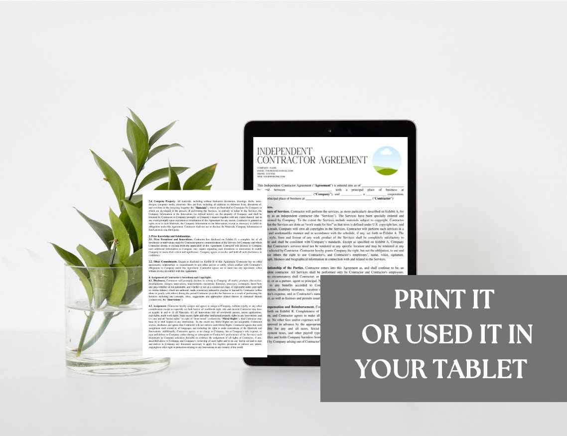 Editable and Printable Independent Contractor Contract Template