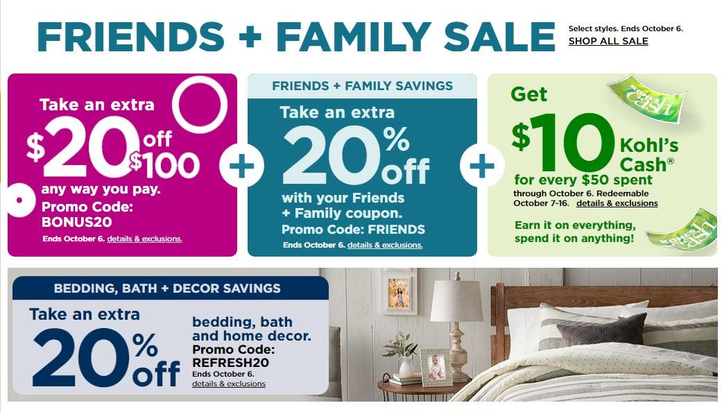 Kohls Coupons: 20% off $20 off $100 purchase 20% off bedding