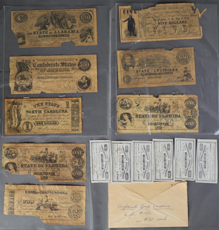 Confederate States Bond Coupons Paper Currency