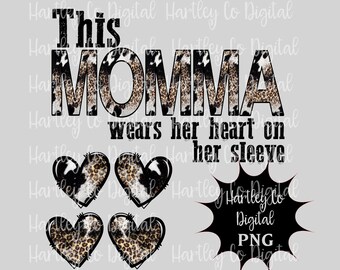 This Mama Wears Her Heart on Her Sleeve PNG Sublimation Design