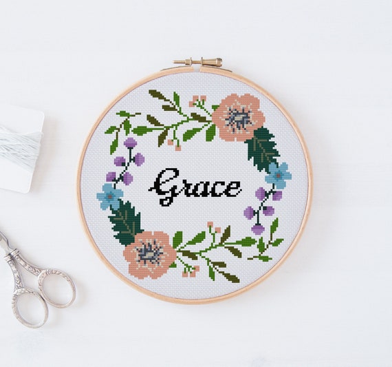 Customizable name cross stitch pattern Modern flowers cross Inspire
