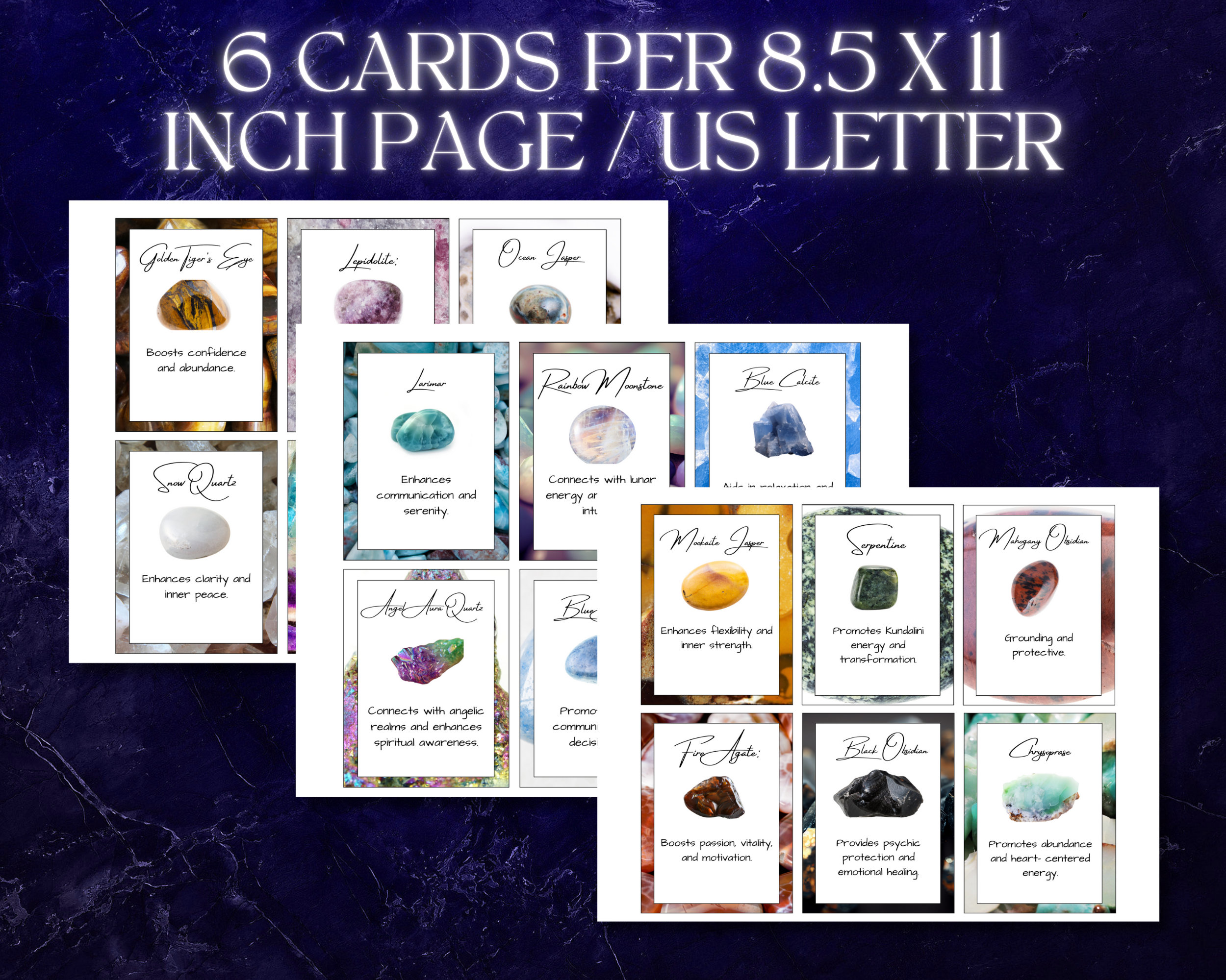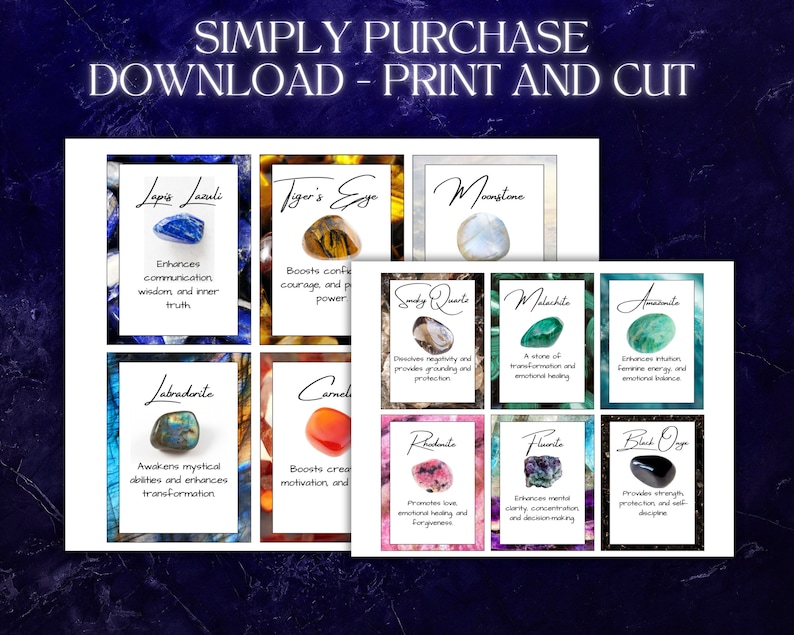 Printable Crystal Meanings Cards full Colour Design 3 3x9 Inch Instant