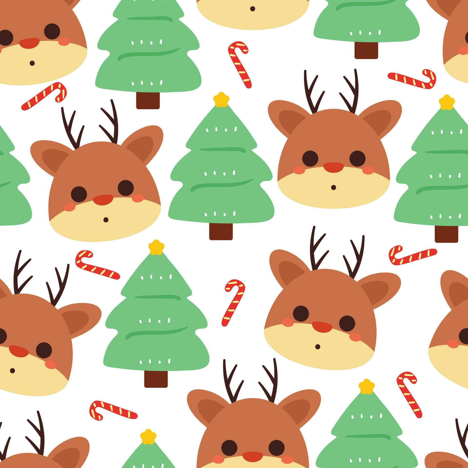 seamless pattern cartoon deer with Christmas tree and Christmas element