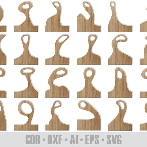 24 Hand Drawn Cutting Board Handle Templates Set #2 SVG DXF PDF